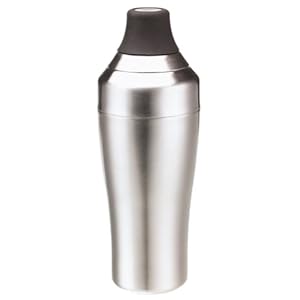 Brushed stainless steel inside and out gives this cocktail shaker a sleek, modern look. Double-walled construction means less condensation, keeping hands from slipping while shaking up favorite drinks. A soft-grip outer cover on the jigger (which doubles as a lid) allows it to be held securely while adding liquid to any of three measurement markings: 1-1/2, 1, and 3/4 ounces. A built-in strainer prevents unwanted ice from falling into glass... Read More...
